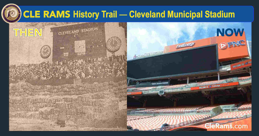What: From their American Football League debut in 1936 through the 1945 title game, the Cleveland Rams played 20 of their 41 home games here. Much like the baseball Cleveland Indians of the era, the Rams toggled between Cleveland Stadium and League Park—treasuring the potential for a larger gate at the former (78,000 capacity) but comfortable with the intimacy of the latter (23,000). The Stadium was the natural choice to host the 1945 title game, yet only 32,178 fans shivered through near-zero-degree weather to watch the Rams down the Washington Redskins on a patchy field insulated with 9,000 bales of straw. Precisely 50 years and one day later, the Cleveland Browns played their last game at Cleveland Stadium before moving to Baltimore, and the structure was razed soon thereafter. Today, no recognition of the Cleveland Rams or the history of Cleveland Stadium exists anywhere on the site.